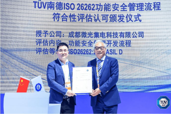 2021年12月17日,TÜV南德意志集团(以下简称“TÜV南德”)德国总部正式向微光集电签发了最高可以支持到ASIL D的芯片产品开发的功能安全管理开发流程认证证书。